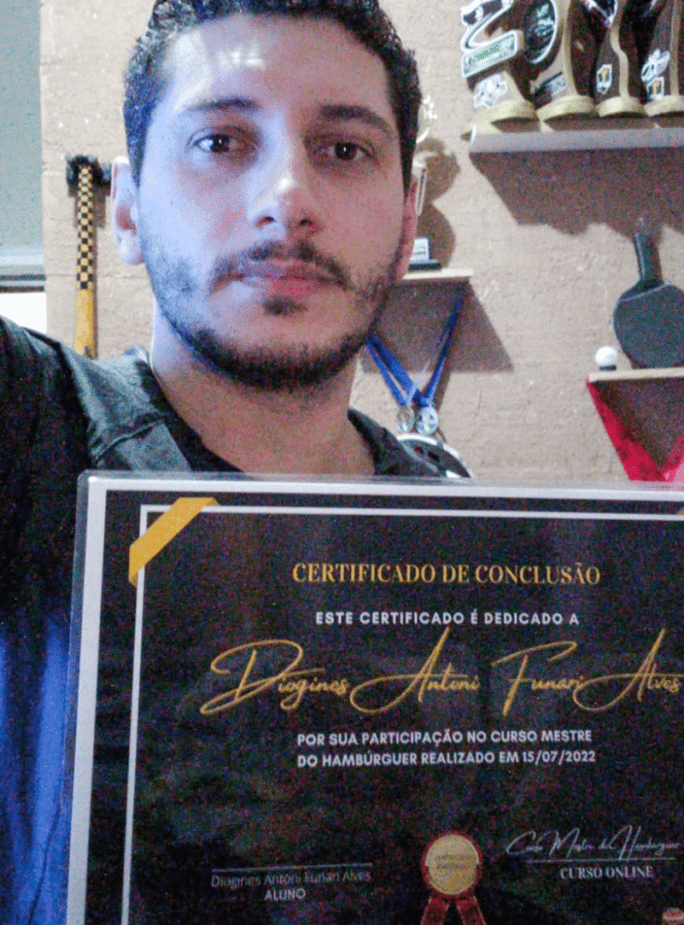 Diogines foi um de nossos alunos e hoje está muito feliz por ter alcançado seu objetivo após ter feito nosso Curso Mestre do Hambúrguer. Hoje ele tem seu DELIVERY com uma excelente produção.
